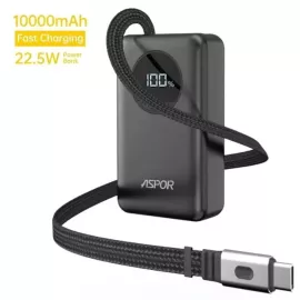 باور بانك بسعة 10000mAh شحن سريع 22.5W مع كابل Type-C قابل للسحب ASPOR A372