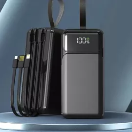 باور بانك قوي بسعة 80000mAh مع شحن سريع 22.5 واط، شاشة رقمية دقيقة، 5 مخارج طاقة، و4 كابلات مدمجة لتشغيل عدة أجهزة في وقت واحد. تصميم متين وسهل الحمل ومثالي للرحلات والاستخدام اليومي.